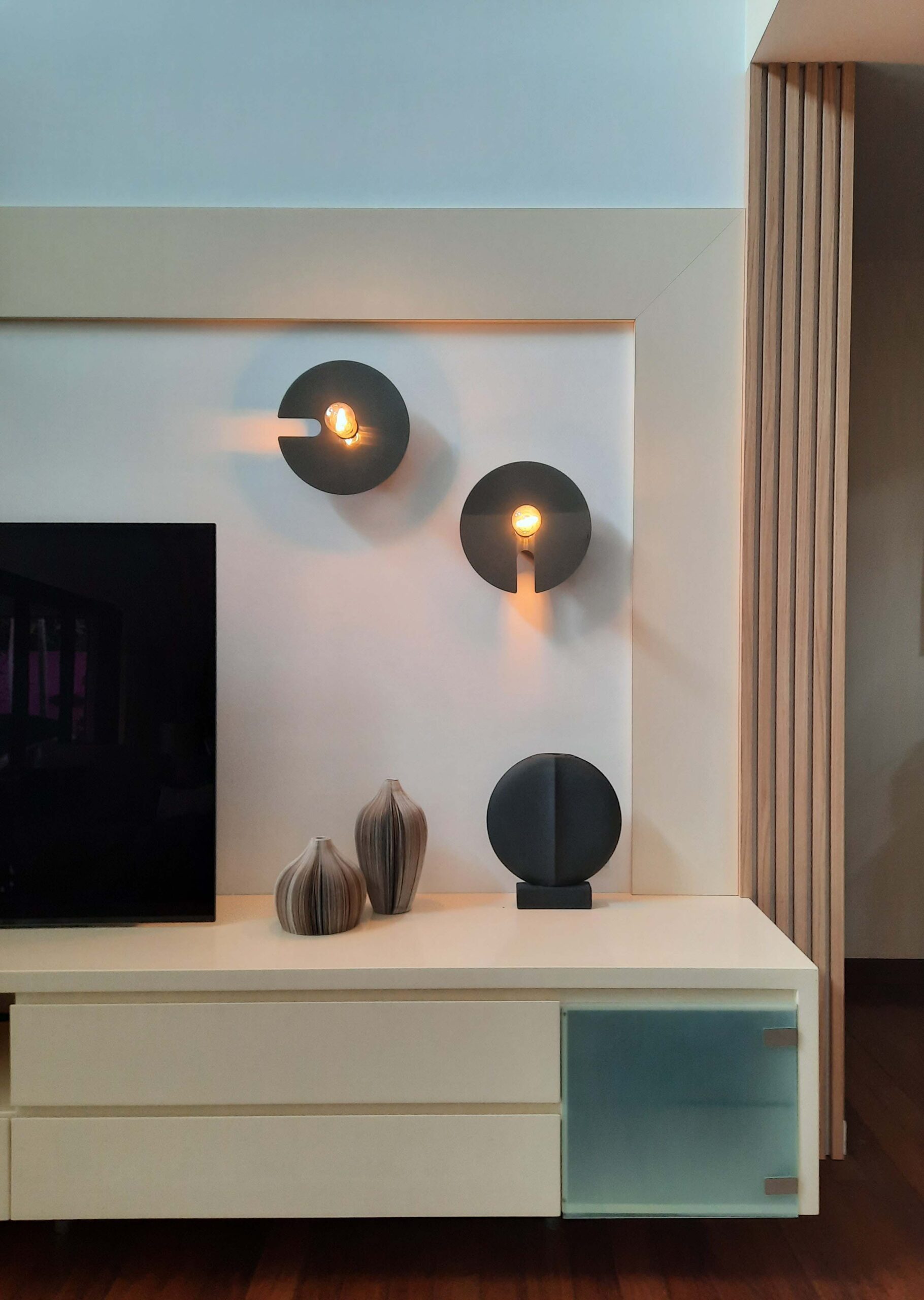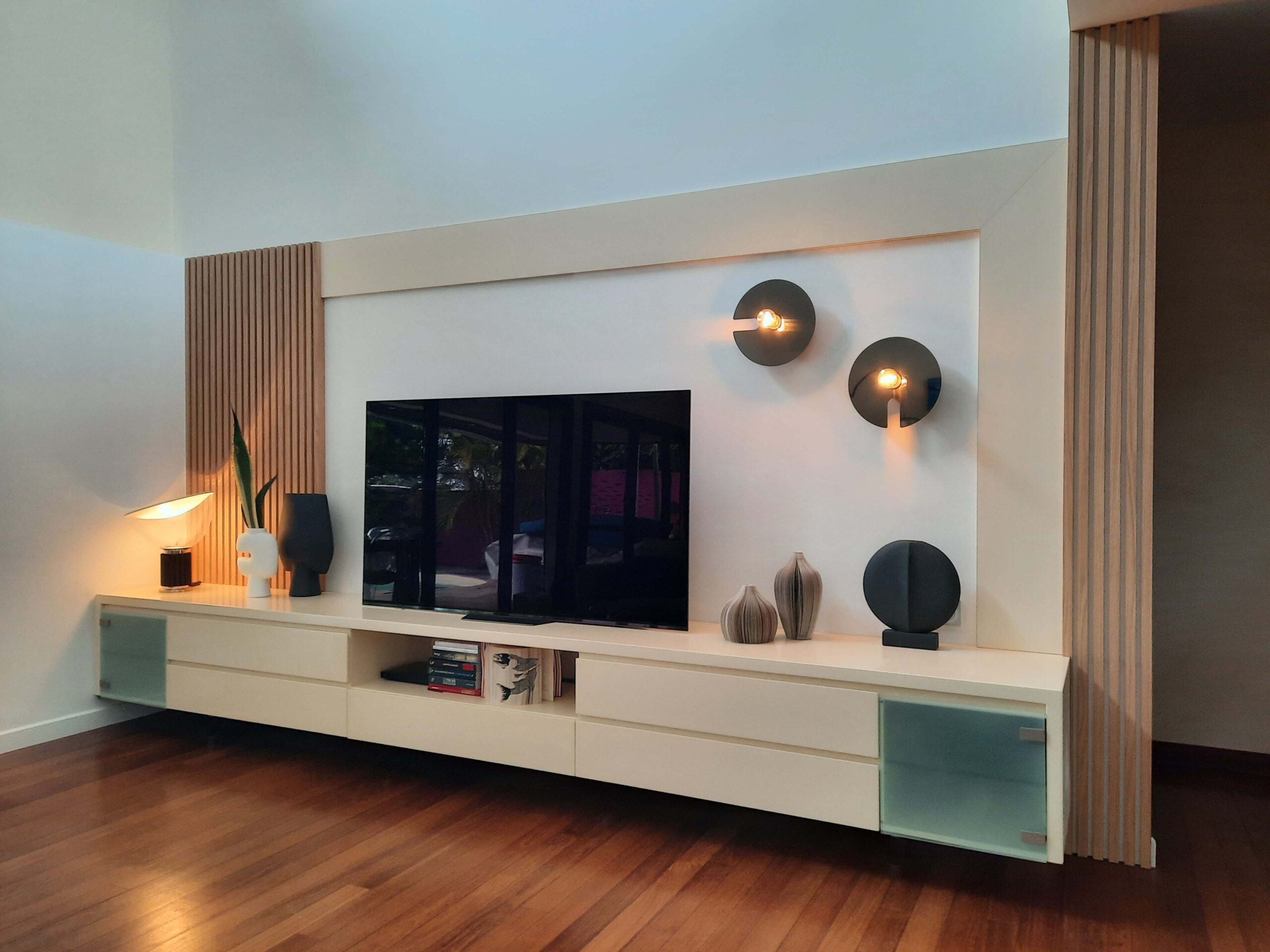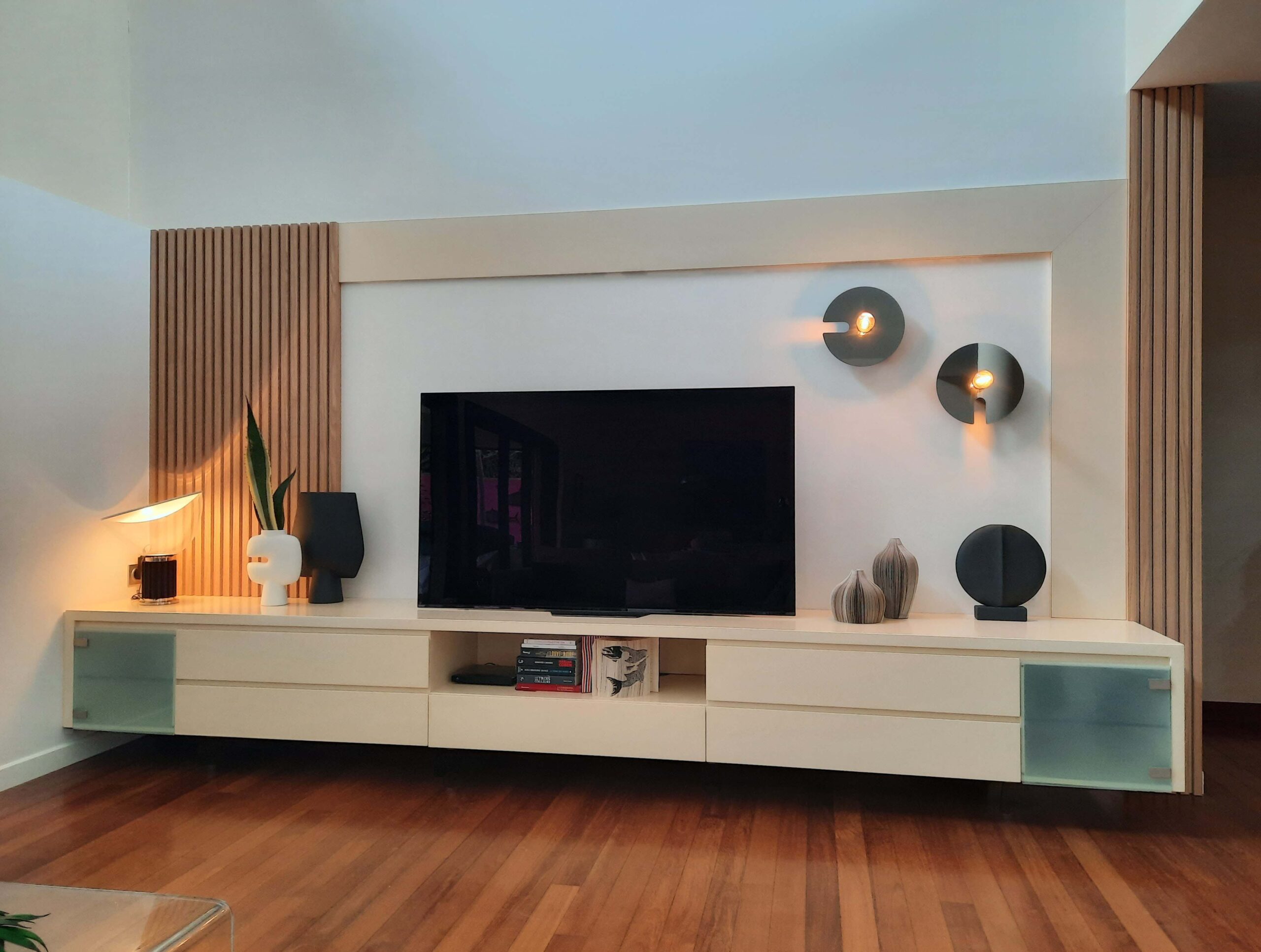 Conception et réalisation d’un meuble TV sur-mesure pour donner du caractère au salon TV .